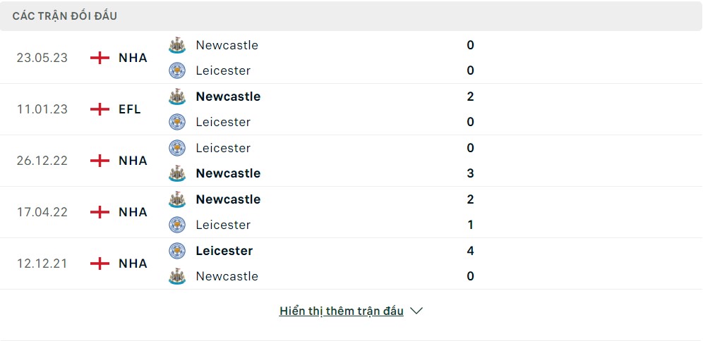Thống kê phong độ gần đây & thành tích đối đầu Newcastle vs Leicester City