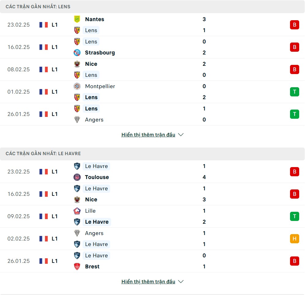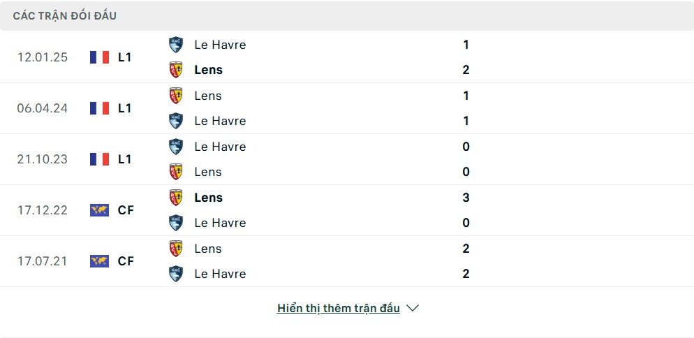 Thống kê phong độ gần đây & thành tích đối đầu RC Lens vs Le Havre
