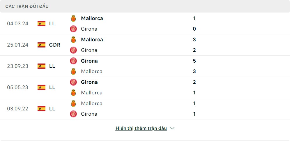 - RCD Mallorca 1 – 0 Girona (Cả trận)
