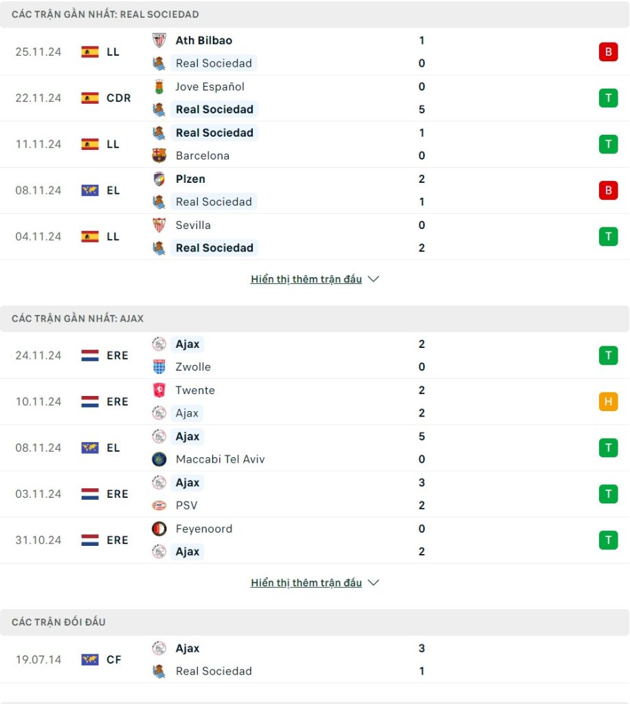 Thống kê phong độ gần đây & thành tích đối đầu Real Sociedad vs Ajax