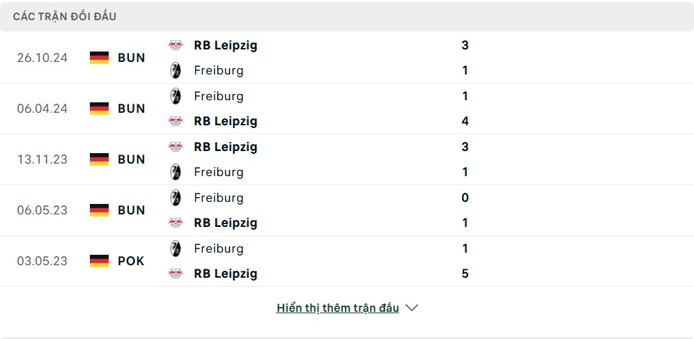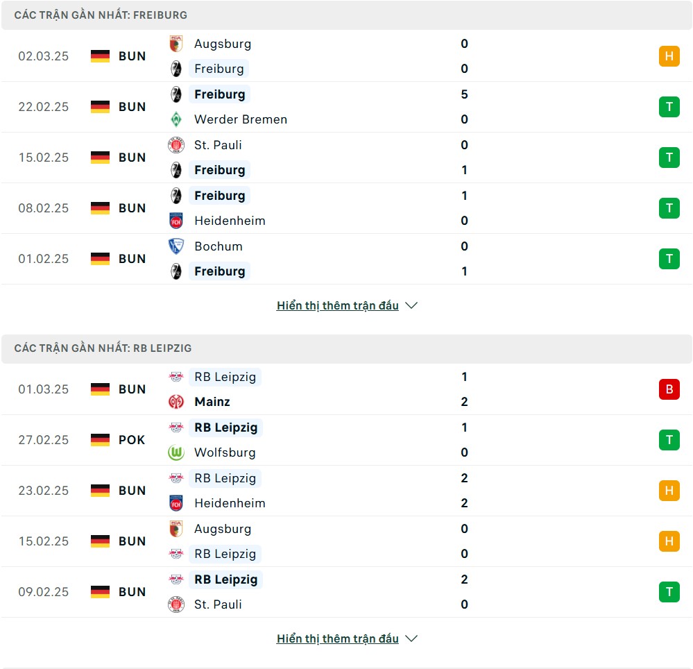 Thống kê phong độ gần đây & thành tích đối đầu SC Freiburg vs RB Leipzig