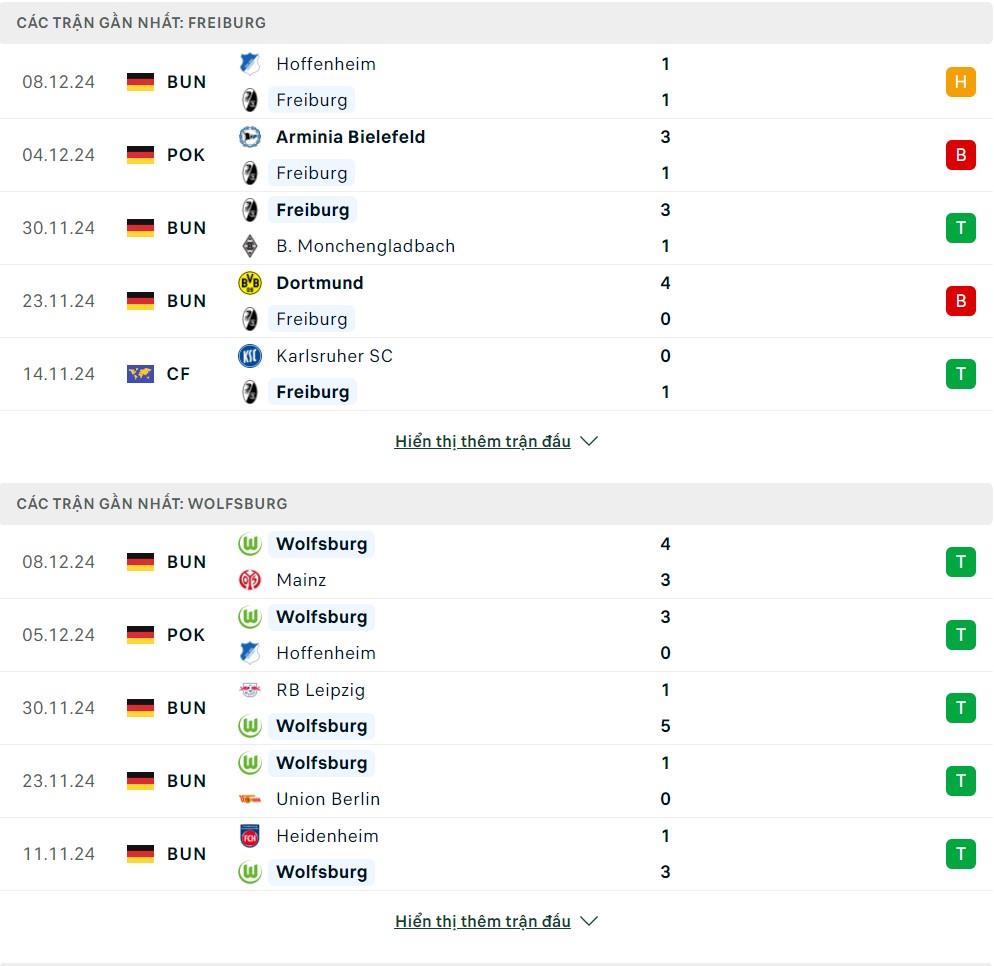 Thống kê phong độ gần đây & thành tích đối đầu SC Freiburg vs VfL Wolfsburg