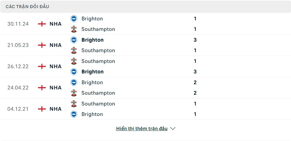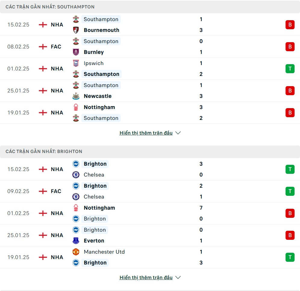 Thống kê phong độ gần đây & thành tích đối đầu Southampton vs Brighton