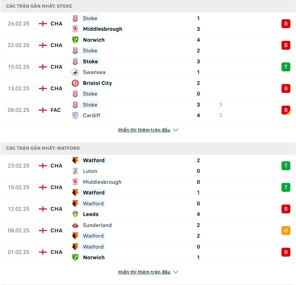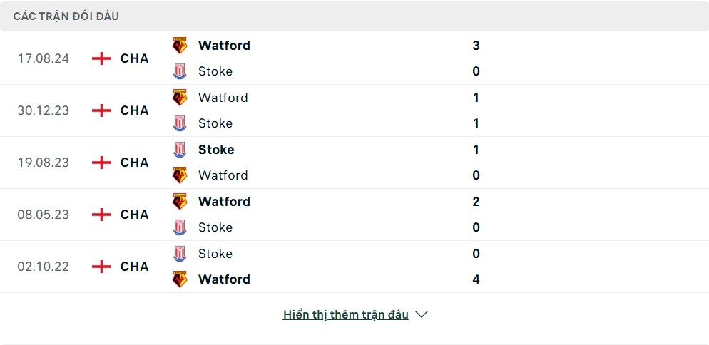 Thống kê phong độ gần đây & thành tích đối đầu Stoke City vs Watford