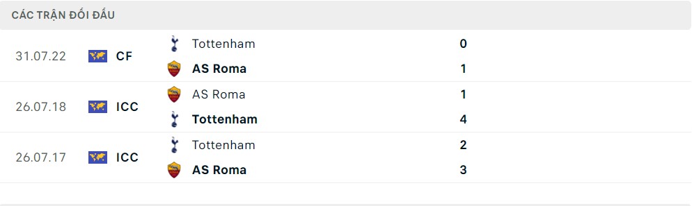 Trong quá khứ, Tottenham và AS Roma đã gặp nhau 3 lần nhưng đều trong khuôn khổ giao hữu. Cán cân đang nghiêng đôi chút về đại diện Italia với 2 chiến thắng trong khi con số này bên phía “Gà trống” chỉ là 1. Tuy nhiên kể từ lần gặp nhau gần nhất là trận giao hữu ở giai đoạn Pre-season mùa giải 2022/23 tới giờ, cả tương quan lực lượng và phong độ của hai bên đang có sự tương phản không hề nhỏ.