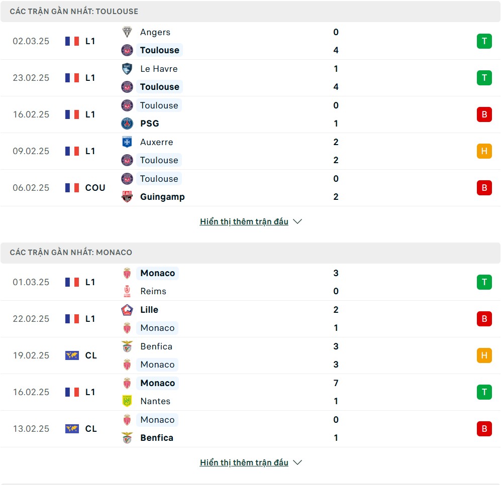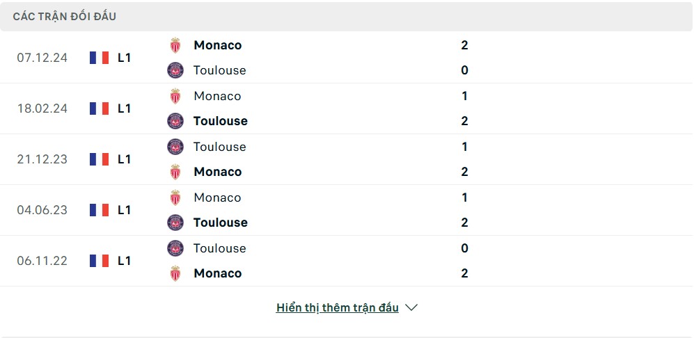 Thống kê phong độ gần đây & thành tích đối đầu Toulouse vs AS Monaco