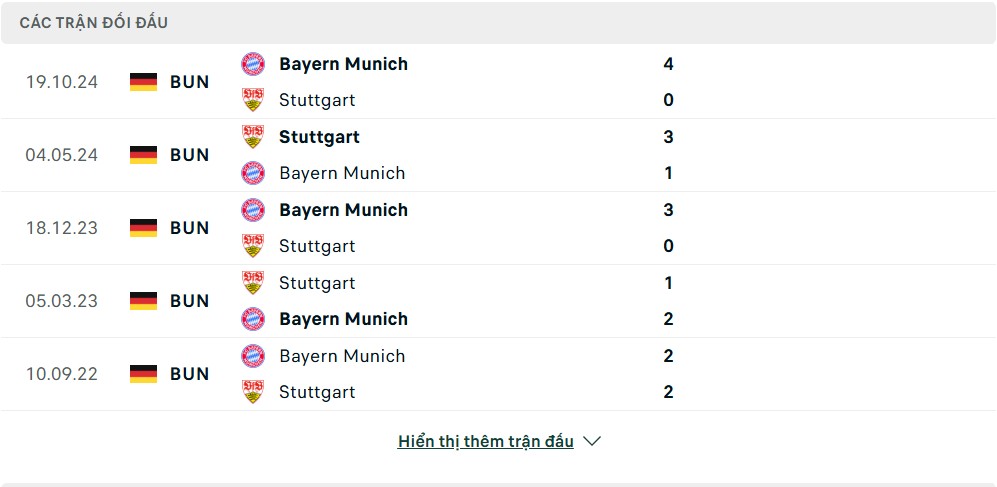 Thống kê phong độ gần đây & thành tích đối đầu VfB Stuttgart vs Bayern Munich