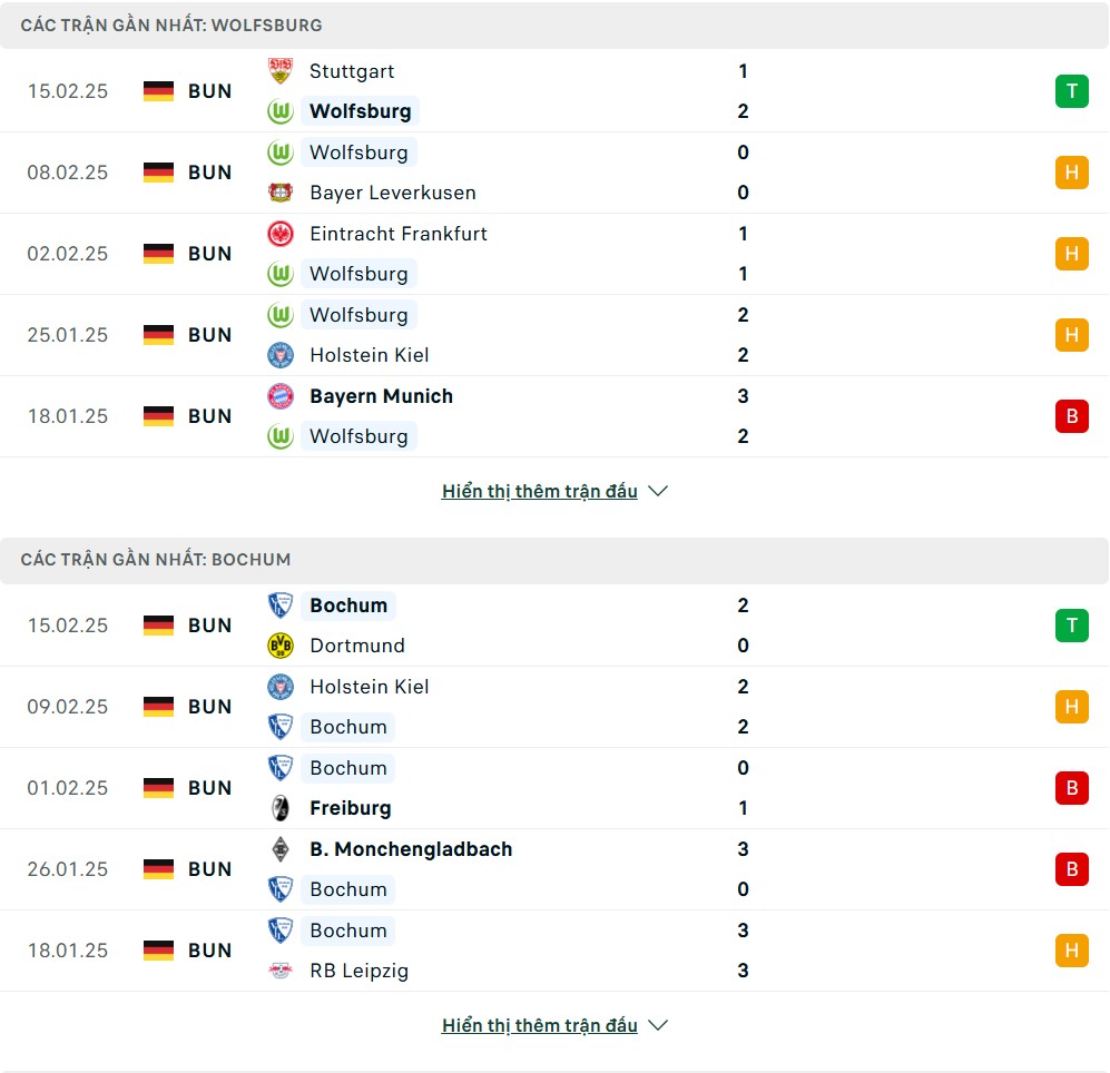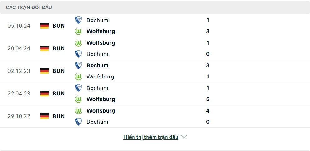 Thống kê phong độ gần đây & thành tích đối đầu VfL Wolfsburg vs VfL Bochum
