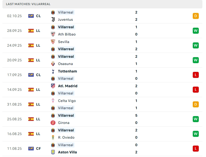 Villarreal ở 7 vòng đấu đầu tiên, hàng công mang về 13 bàn thắng cùng hàng thủ nhận 5 bàn thua, 3/5 trận vừa qua của Villarreal khép lại 90 phút từ 3 bàn trở lên, khi thi đấu xa nhà ở 5 trận gần nhất, hàng công của Villarreal có được 6 bàn thắng cùng hàng thủ nhận 7 bàn thua. Villarreal thường không có hàng thủ vững chắc mỗi khi phải chơi trên sân đối phương.
