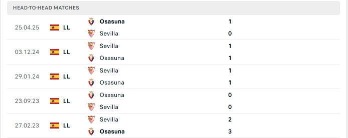 Phong độ thi đấu gần đây Sevilla vs Osasuna