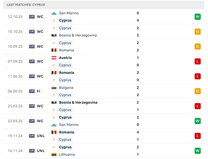 Phong độ thi đấu gần đây Síp vs Áo