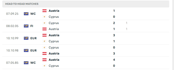 Những màn đụng độ giữa Síp và Áo thường diễn ra hấp dẫn với nhiều bàn thắng được tạo ra, cụ thể ở 3/5 lần gặp nhau gần nhất của hai đội và 3/4 lần đón tiếp Áo trên sân của Síp khép lại trên 3 bàn.