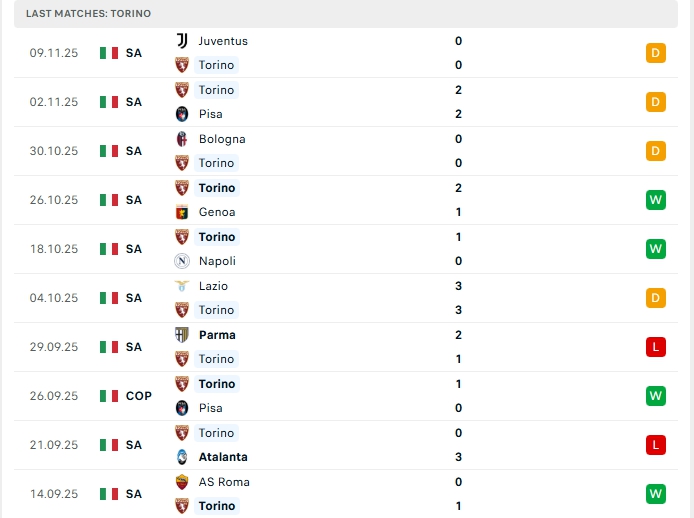 Phong độ thi đấu gần đây Torino vs Como