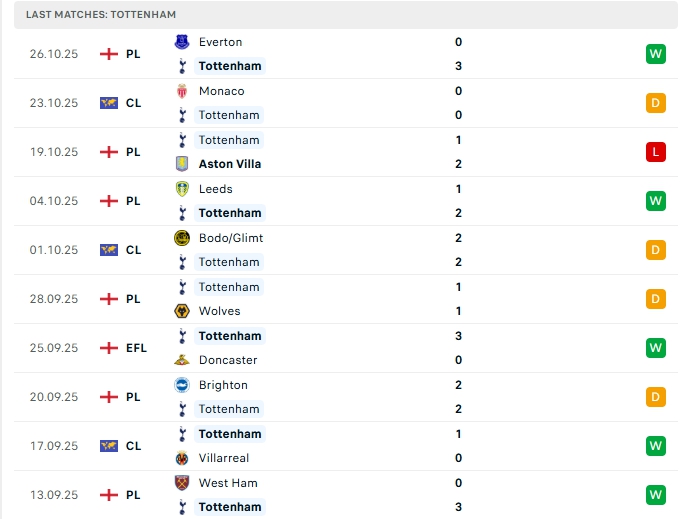 Tottenham sau 9 trận đấu họ mang về 5 chiến thắng, 2 hòa cùng 2 thất bại, có được 17 điểm và đang xếp vị trí thứ 3 trên BXH, ở vòng đấu gần nhất Tottenham có chiến thắng ấn tượng 3-0 trước Everton, phong độ thời gian qua của Tottenham là khá tốt, họ chỉ để thua 1 ở 10 trận gần nhất, trên sân nhà của mình ở 5 trận gần nhất, tottenham có được 2 chiến thắng, 1 hòa và 2 thất bại.