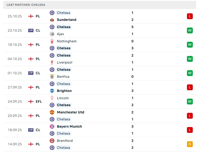 Chelsea ở 9 lượt trận đầu tiên đội bóng này có được 17 bàn thắng cùng hàng thủ nhận 11 bàn thua, cả 5 trận vừa qua của Chelsea khép lại trên 3 bàn thắng, khi thi đấu xa nhà ở 5 trận gần nhất cả 5 trận đều vượt mốc trên 3 bàn.