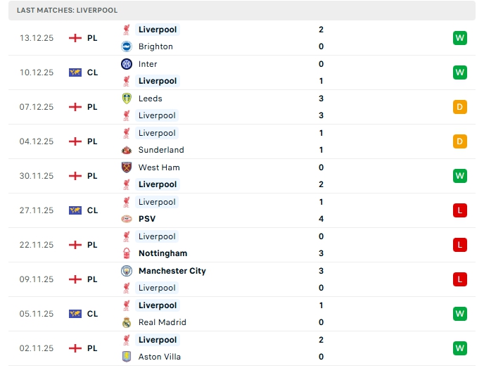 Liverpool sau 16 lượt trận, hàng công của đội bóng này mang về 26 bàn thắng cùng hàng thủ nhận 24 bàn thua, 3/5 trận vừa qua của Liverpool khép lại từ 3 bàn trở lên, 3/5 trận xa nhà cũng có kết quả tương tự. Hàng công đang chơi tốt nhưng hàng thủ thiếu chắc chắn.