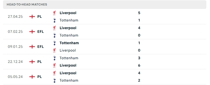 Những màn đụng độ giữa Tottenham và Liverpool thường diễn ra hấp dẫn với nhiều bàn thắng được tạo ra, cụ thể ở 4/5 lần gặp nhau gần nhất và 4/5 lần đón tiếp Liverpool trên sân của Tottenham khép lại trên 3 bàn thắng, một trận đấu được dự báo hấp dẫn ngay từ tiếng còi khai cuộc.