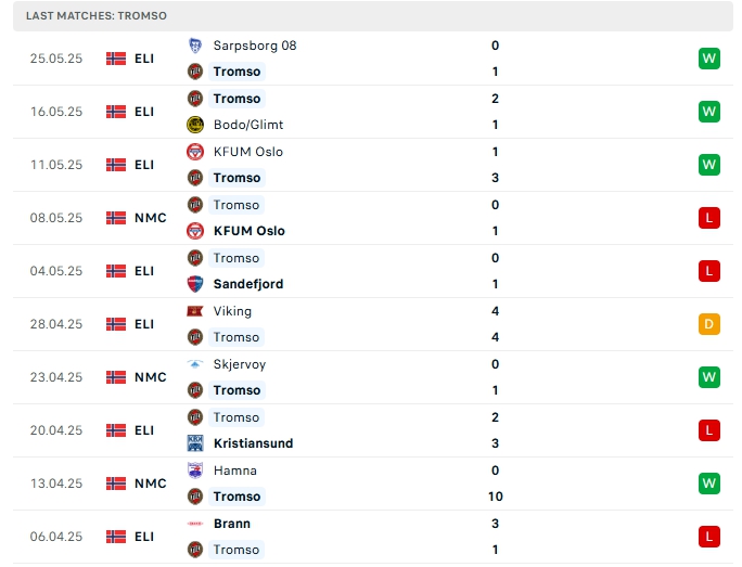 Tromso ở vòng đấu gần nhất họ có được chiến thắng trước Sarpsborg 08, đây là trận thắng thứ 3 liên tiếp và là trận thắng thứ 4 của họ sau 8 vòng đấu cùng với 1 hòa và 3 thất bại, có được 13 điểm và đang xếp ở vị trí thứ 7 trên BXH, trên sân nhà của mình Tromso mang về 2 chiến thắng, cùng 2 thất bại sau 4 trận đấu.