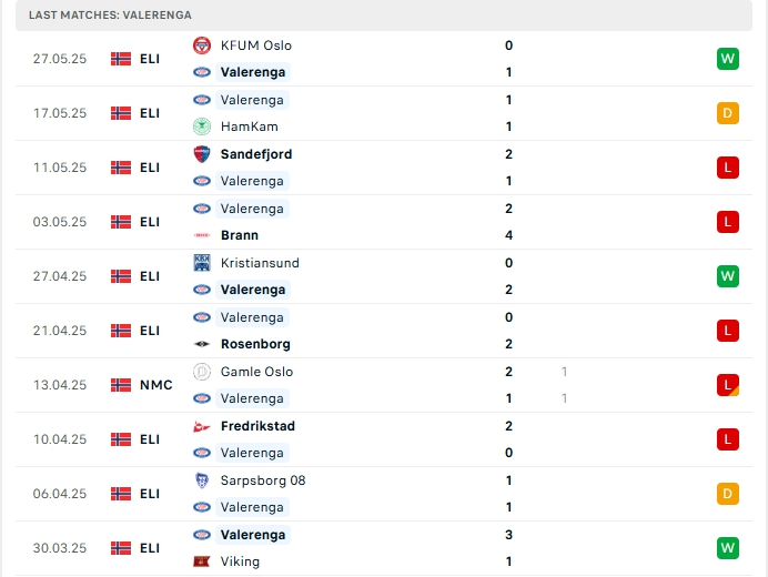 Phong độ thi đấu gần đây Tromso vs Vaalerenga