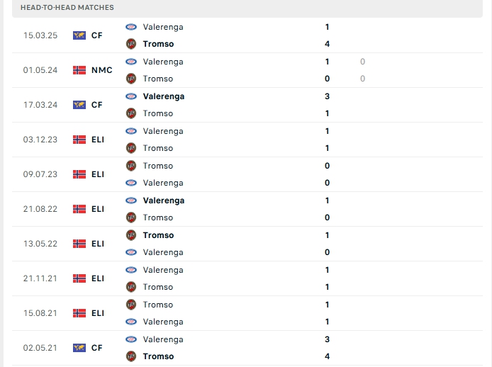 Quá khứ đối đầu Tromso vs Vaalerenga
