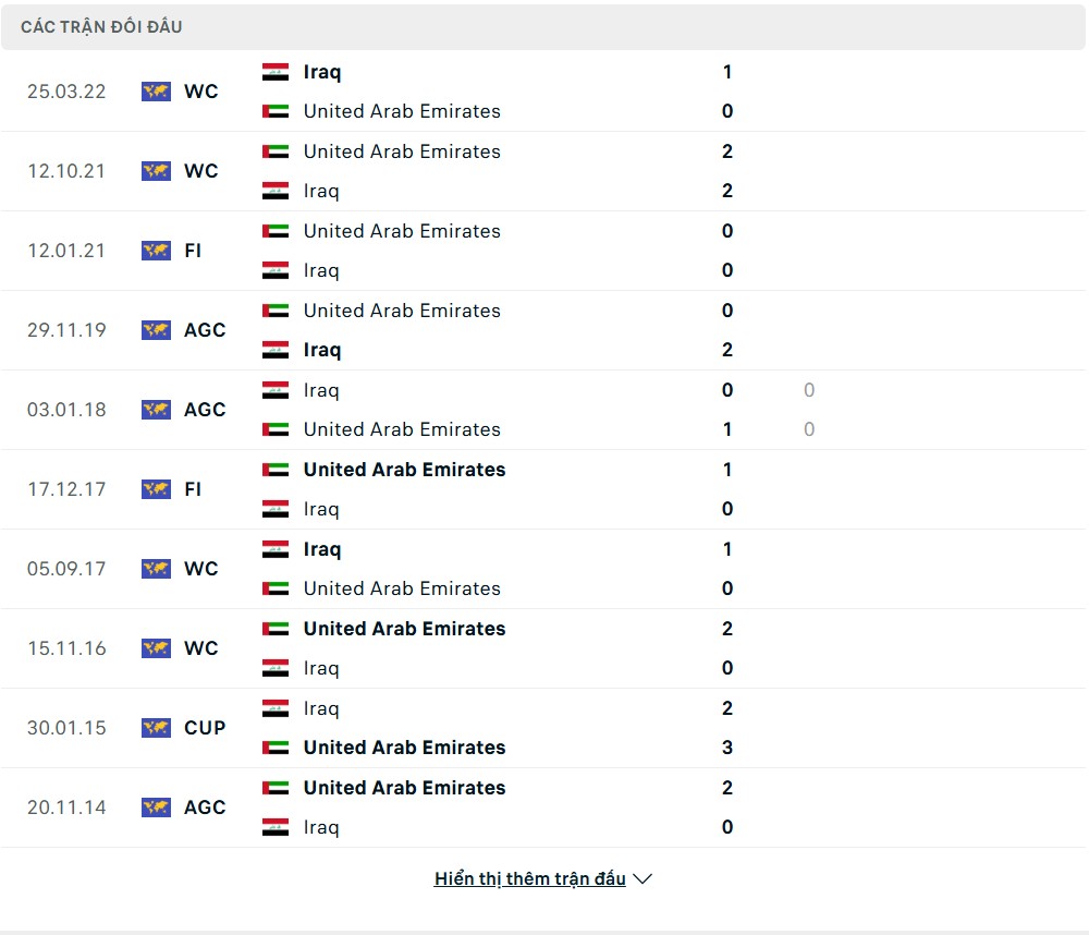 Quá khứ đối đầu UAE vs Iraq
