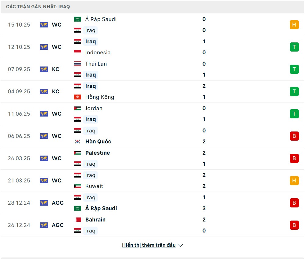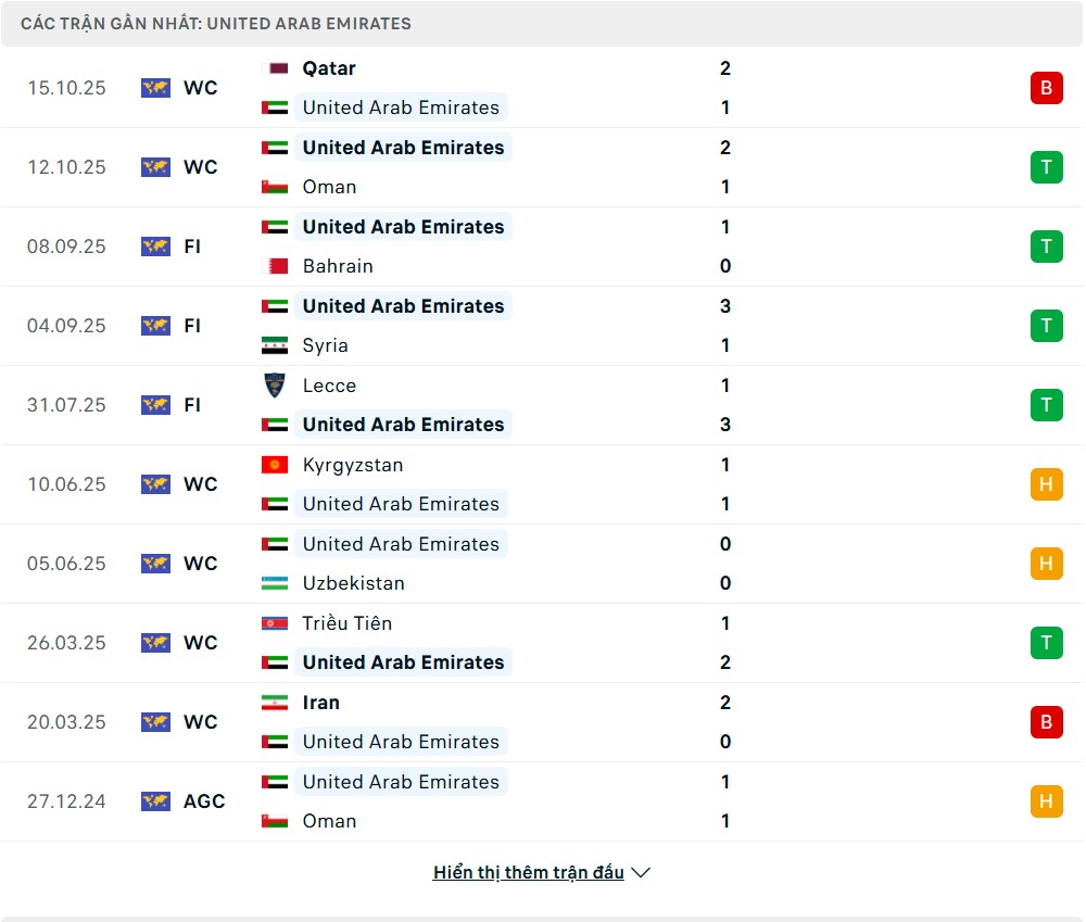 Phong độ thi đấu gần đây UAE vs Iraq