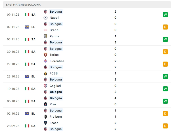 Bologna sau 11 trận đấu này, đội bóng này có được 18 bàn thắng cùng hàng thủ nhận 8 bàn thua, hàng thủ đang chơi tốt thời gian qua, 3/5 trận gần nhất của Bologna khép lại không quá 2 bàn thắng, khi thi đấu xa nhà Bologna vẫn chơi chắc chắn với số đông cầu thủ nơi hàng phòng ngự.